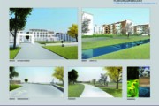Entwurfsplan, Lageplan, Geländeschnitt, Strukturdarstellung, Mustergrundrisse, Ansichten, Visualisierungen des Außenraums, Arbeitsmodell